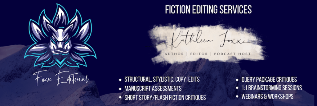 Foxx Editorial Kathleen’s editorial services can all be found at foxxeditorial.com. Be sure to sign up for her newsletter and score a FREE set of Character Development Sheets! Share this: Click to share on X (Opens in new window) X Click to share on Facebook (Opens in new window) Facebook Click to share on Pinterest (Opens in new window) Pinterest Like Loading...