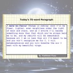 Paragraph Planet, a website that’s been posting 75-word stories every day since 2008, accepted this wee story about a Hummingbird on April 3, 2021. (Click photo to enlarge.)